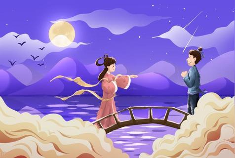 后来,天上的喜鹊被他们的爱情感动了,就化作“鹊桥”,让牛郎织女相会。王母娘娘也有所感动,准许他们每年农历七月初七,可在鹊桥相会。