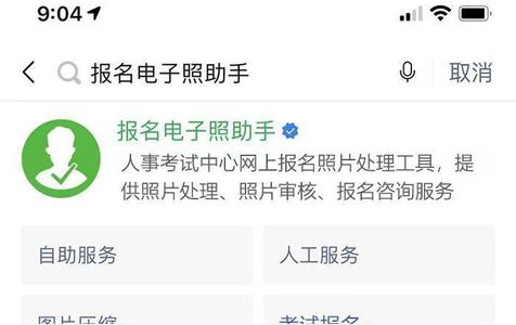 2、打开手机微信客户端,找到应用工具”报名电子照助手“,选择其中的自助证件照处理功能。