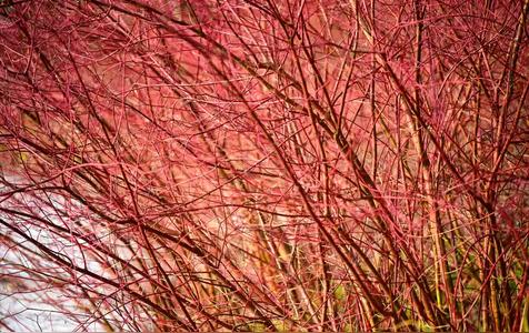 山茱萸科梾木属落叶灌木,枝干和叶子都呈现暗红色至深红色,成片种植很是壮观,是非常出色的庭院造景植物。