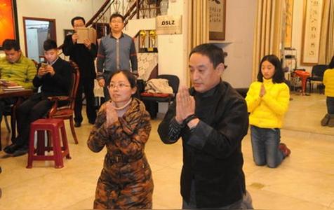 一跪三叩头,有的地方,还会增加一个变化,即每一次叩头前先作揖一次,有空手作揖,也有手持香作揖。这个时候的一跪三叩,实际是一跪、三作揖、三叩首。