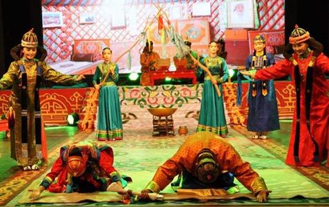 4.双手与肩宽和头平齐,连续叩头三次。之后,抬头挺胸,站起身来,先起左腿,后起右腿。至此,完成了走三步,一跪三叩头的礼仪。