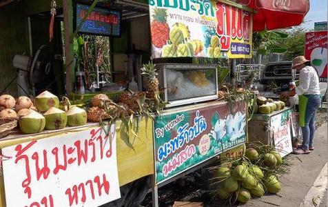 据悉,当地椰子大多生长在果园里,所以价格很便宜,每个椰子售价只有20泰铢(约4元人民币)。