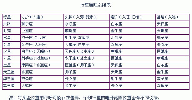 我们解骰子的时候,加入行星的强弱:庙、旺、落、陷,能够帮助我们更好的判断卦象的吉凶。掷出骰子,如果行星落在自己庙旺的星座,卦象则吉,落陷则不吉。(如下表)