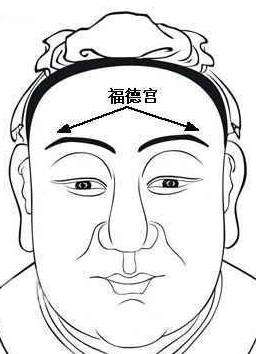 福德宫位于眉毛外侧的上方,顾名思义主宰我们的福德,影响我们的福气。如果额头和下巴宽广对称,那就是“天地相临”,代表一生福气多多。