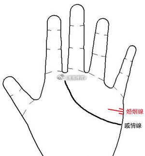 4、婚姻线秀长,上下有「小横线」的朋友,不论是男生或女生,早婚或晚婚,婚姻关係单纯美满,有始有终。