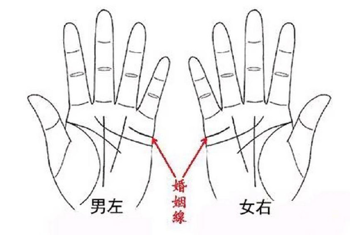 3.左手两条婚姻线长度不一的男人会在三角恋爱关系上发生问题。