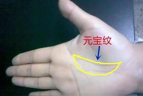 3、手掌有元宝纹,三条主线一起其他的一些辅助线形成的,上面宽下面窄,如梯形,形如元宝,称为元宝纹。手中的元宝纹如果能组合成一个梯形状,并且封闭严密,这属于大的财库,有财库代表着财厚积蓄多,容易有很多的资产,如房子、车子等,这类人属于不缺钱花的手相之一。