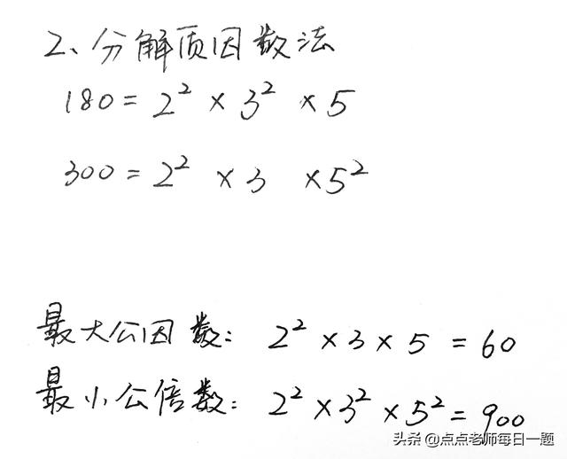最大公约数:分解质因数后取共有质因数的最低次方相乘。