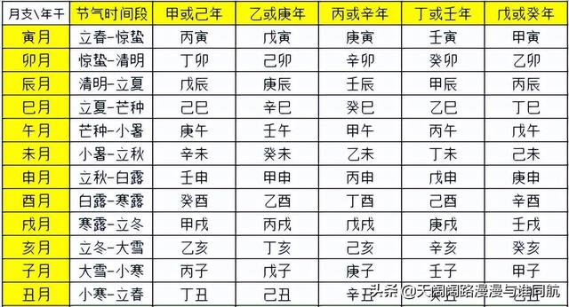 月干公式:月干=年干x 2+月支 (如果和超过10,直接取个位数;如果和为20,则取10)