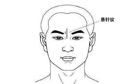 在面相中眉心中央的位置为印堂(命宫)的所在,若在这个位置长有一条深刻的直纹穿过印堂穴,这种纹被称作“悬针纹”。