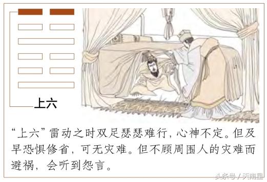 【原文】上六,震索索,视矍矍,征凶;震不于其躬,于其邻,无咎;婚媾有言。