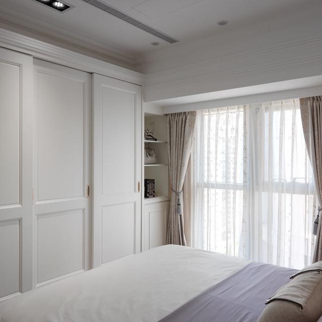 通常进到卧室后,首先看到的是床尾部,床头靠墙,进卧室一侧是入墙衣柜,另一个根据实际需求来选择是否要做装饰柜,同时每天早上的太阳会第一时间进入卧室里,让整个卧室充满着阳光,室内空气流通性好,隐私性好。