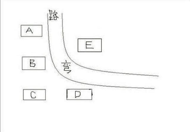 (bdc为反弓煞,c点收到的影响最重。E为风水好的地方。如南方很多村落都是在E点。(图片来源于网络))