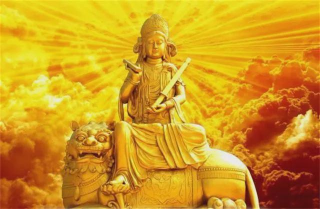 文殊菩萨和毗卢遮那如来、普贤菩萨合称“华严三圣”,他是释迦牟尼佛的左胁侍,他的道场在山西五台山。五台山我国佛教四大名山之首,因此被称为“金五台”。