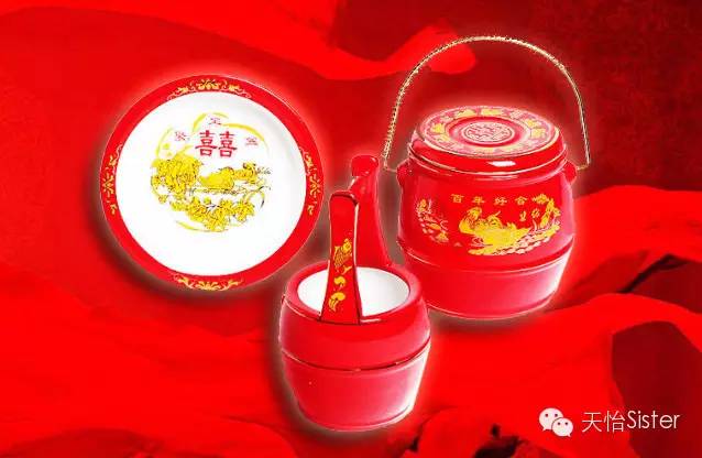 当然还有吉祥物,比如常见到的子孙桶中放的枣子,花生,桂圆,荔枝,百合,莲子,麻线,五只红鸡蛋。寓意早生儿女,以及保佑子孙衣食无忧,五子登科等等。