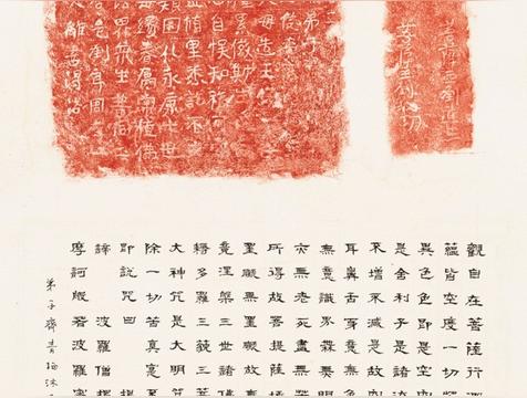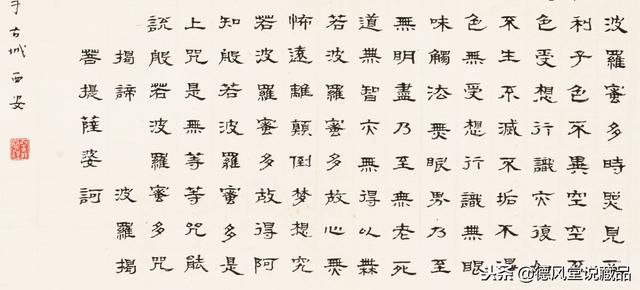 家中悬挂供奉《心经》作品,可在心烦意乱时,通过敬诵和书写,得到安宁与福报。至于生活工作家庭等种种事,皆可以心经观之,则无得失,无损益,无喜无悲无嗔,随所住处皆安乐。