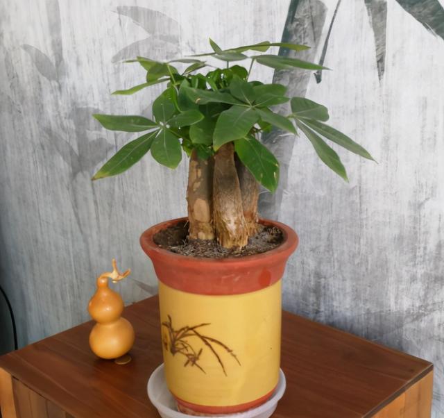 所以在家庭中养发财树千万不要用太大的花盆,尽可能让花盆小一点,土壤用透气性好一些的,不要用深盆,用矮一点的花盆,这样才能够保证它土壤快速的见干见湿,根系直接长满盆,叶片一直处于油绿的状态,如果浇水土壤干的慢,烂根烂叶的情况就会频繁的发生。