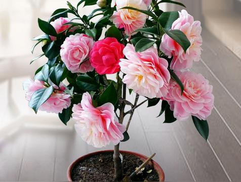 在养护方面我们要顺应茶花的生长习性,它耐水性不好,所以平常浇水要刚刚好,不可以让土壤积水。在它的生长旺季,特别是在分化花芽孕育花蕾的时候,要给它追加一些沤制好的有机肥,间隔时间是7~10天。等到花期临近,在帮叶片喷施磷酸二氢钾肥,这可以利于植物进行光合作用,让植株将来长的体型健壮,叶子苍翠浓郁,更重要的是可以帮助花芽和花苞孕育,让开出的花更有质感。