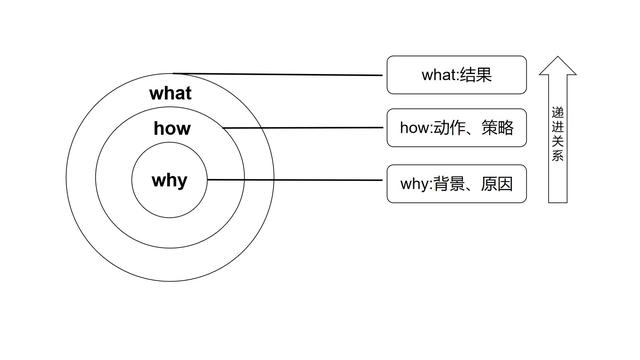 “WHY型思维”的高明之处就是将why、how、what形成一个可视的黄金圈,并将why放置在最核心,表达首要任务是搞清楚原因,然后才是怎么做,最后才是展示最终的结果。