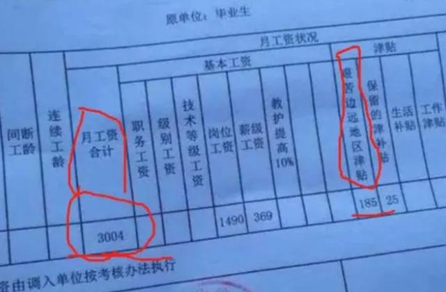 这位网友的基础工资为1490元,薪级工资为369元,再加上偏远地区的津贴补助185元+25元,这写零零总总的加起来,一个月的薪资也才3004元,和普通打工人的薪资也相差无几。