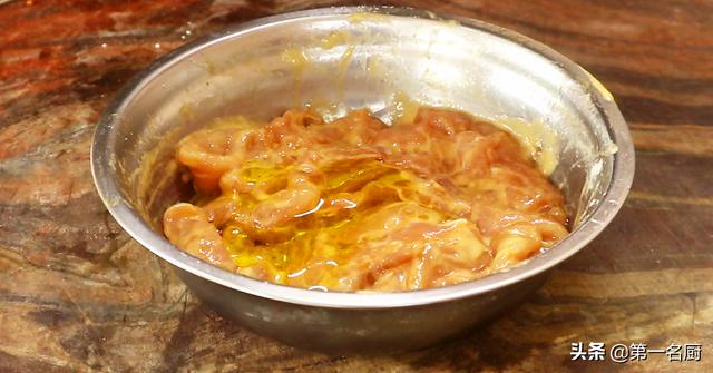 加食盐,胡椒粉,料酒,老抽,抓拌均匀,加入蛋清,玉米淀粉,再次抓匀,加入食用油拌匀,腌制五分钟。
