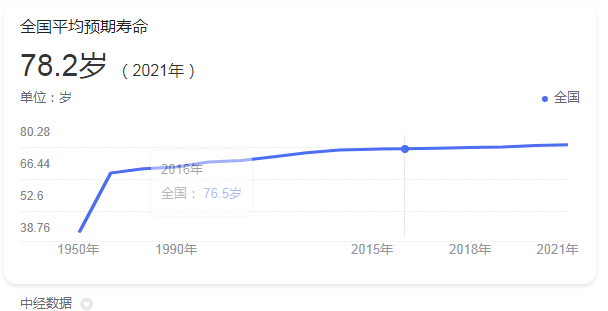 据统计,到2021年,我国平均寿命已经达到了77岁 (男平均73.64岁,女平均79.43岁),比清朝增加了50多岁。