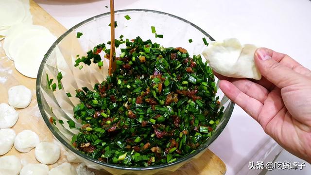 说了素三鲜,我们再表一表肉三鲜,肉三鲜的标配是韭菜,猪肉和虾仁,这里所说的虾仁是鲜虾去皮去壳后,我们取其肉拌到馅料里,其实只要想一想,嫩嫩的猪肉,翠绿的韭菜,配上鲜香的大虾仁,那口感,那味道,是不是叫你垂涎欲滴啊!在我们烟台地区,常常把虾仁用虾米代替,那又是别有一番滋味。下面我们看一下具体做法。