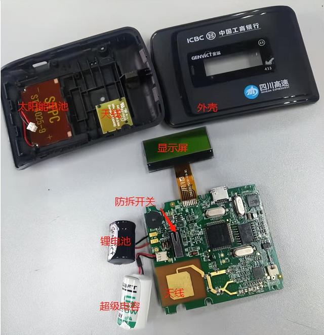 4、天线负责和高速公路龙门架、收费站收费系统进行通信。