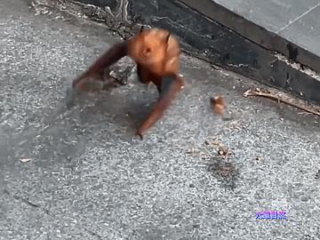 这只蝙蝠不知道是迷路了,还是翅膀受伤了才趴在街道边。其中有一位女士为了更清晰拍摄到这只怪异的蝙蝠,不断地靠近拍摄,可这一举动也惹怒了蝙蝠,这只红色蝙蝠不断地龇牙咧嘴,还发出怪异的声音,似乎是在警告路人禁止靠近,突然这只蝙蝠飞扑袭击,出现了惊险一刻。