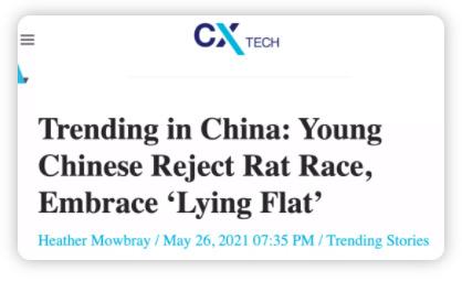 译:中国流行趋势:年轻人拒绝竞争,拥抱“躺平”。