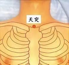 【按摩手法】用中指指腹按揉天突穴并做环状运动,按摩时应控制力度,不要伤到喉咙。