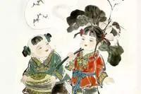 后来,寒山和拾得两位笑口常开,乐为大家排解祸难的高僧,被民间奉为欢喜之神,并将他们俩少年时代的形象画成瑞图,专门悬挂在举行婚礼的喜堂上,以示祝福。