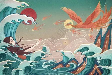 炎帝回家总给自己的小女儿女娃讲大墟之中的情景,和太阳落下那美丽的世界。