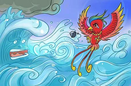 大海听后,肆虐的咆哮道:小小的鸟儿,还想把我大海填平,真是笑话。