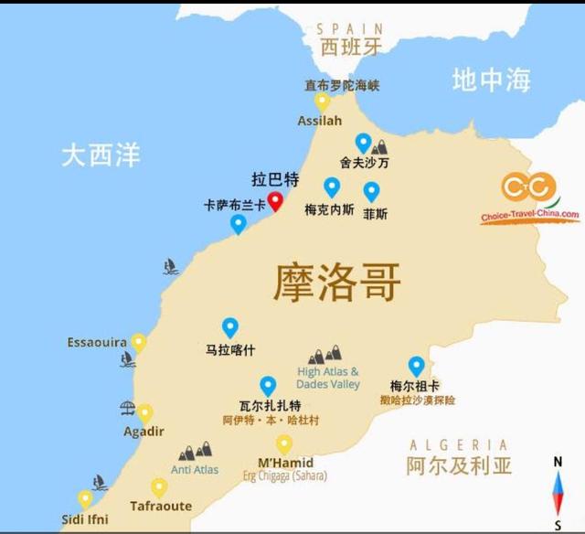 摩洛哥位于非洲西北端。