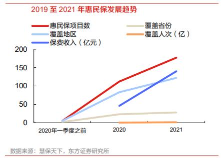 作为一项由政府、保险公司和第三方平台共同助推的新型健康险模式,惠民保集普惠属性与商业属性于一体,并凭借政府指导、老少同价、带病可保可赔、支持医保卡缴费等优势,赢得民众的青睐,迎来爆发性增长。中国保险行业协会数据显示,截至2021年底,惠民保覆盖全国28省,共有1.4亿人次参保,保费约140亿元。