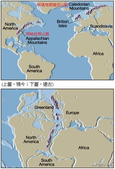 北欧斯堪地那维亚山脉与苏格兰、爱尔兰的山脉与阿帕拉契山脉同源。