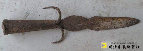 钩和梯是春秋末期常用的兵器。《墨子·鲁问》记鲁班将钩改制成舟战用的“钩强”,楚国军队用此器与越国军队进行水战,越船后退就钩住它,越船进攻就推拒它。《墨子·公输》则记他将梯改制成可以凌空而立的云梯,用以攻城。