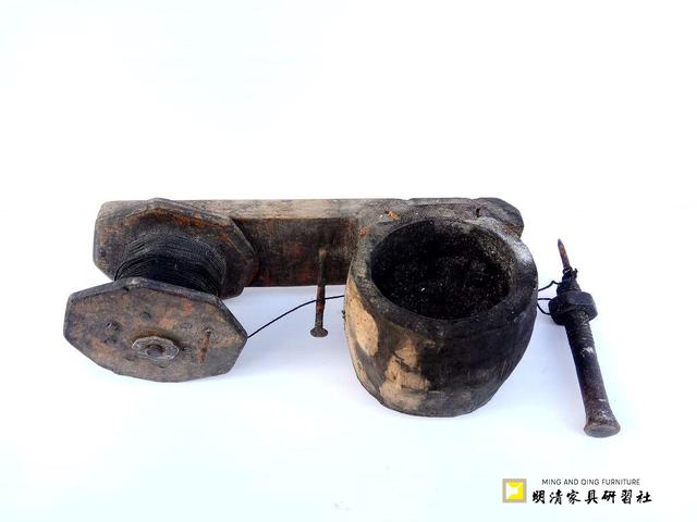 墨斗是木工用以弹线的工具,传为鲁班发明。此工具以一斗型盒子贮墨,线绳由一端穿过墨穴染色,已染色绳线末端为一个小木钩,称为“班母”,传为鲁班之母亲发明。班母通常离地面约一吋。