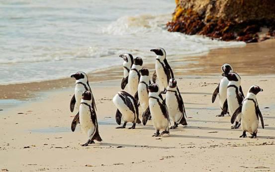而且,这里的海水很特别。本格拉寒流流经非洲西南海域,带来了南极的冰冷海水。同时,本格拉寒流的上升补偿流将海底营养物质带至海面,形成了有利于渔业的自然环境,也丰富了非洲企鹅的“餐桌”,这里的沙丁鱼、凤尾鱼等浅水鱼类为企鹅提供了充足的营养。