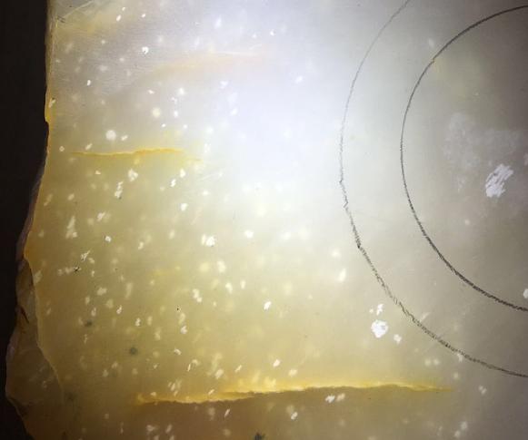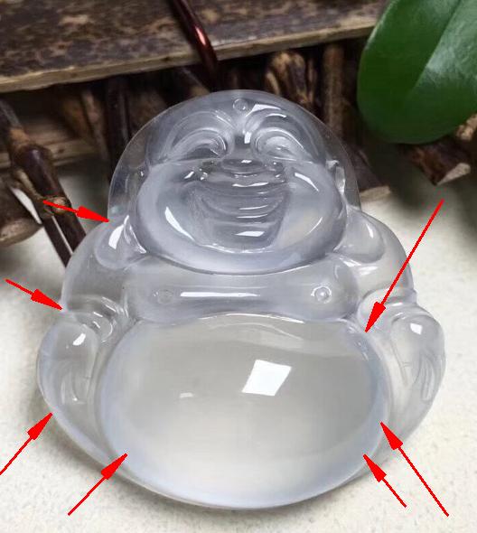 而当这种小晶体呈无序排列且不影响透明度的情况下,会有比“起荧”更稀有的现象,称为“起胶”。这种冰种翡翠可以感觉到整体像流体胶一般,寒性更甚于“起荧”。