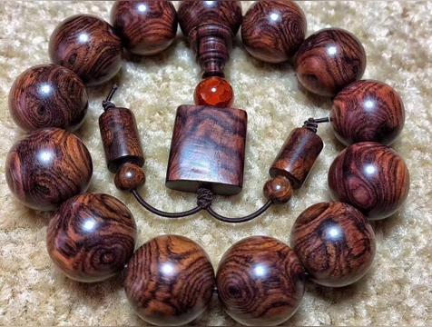 第五个“印度紫花梨”,学名赛州黄檀,也叫紫罗兰。这是来自于中美洲的酸枝木,此物早些用于家具市场材料,后于国内2015年左右进入文玩手串市场,还取了个好听的名字叫印度紫花梨,主要做108佛珠手串及对眼手球,在某地尤为盛行。