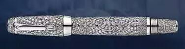 此笔镂空的笔身由纯金打造,并镶有1400颗钻石。原料的珍稀已注定了他不平凡的一生。