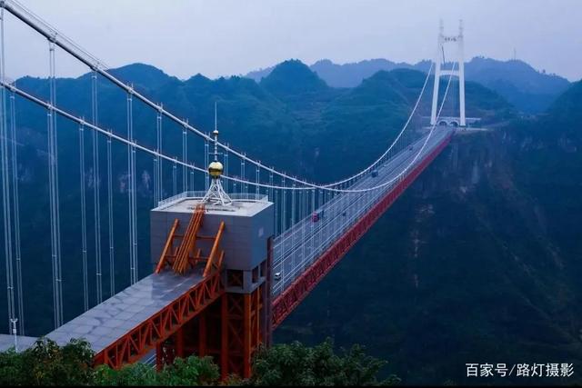 矮寨大桥用塔、梁完全分离的方案,世界上首次采用岩锚吊索方案。有人把这里评为世界十大非去不可的新地标之一,一点也不为过!