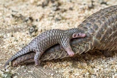 成年中华穿山甲和幼仔。(资料照片)