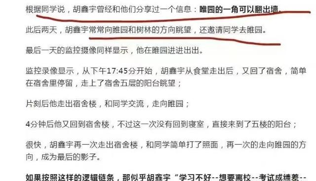 这种猜测的准确性确实有点低,作为一个高中生,一个男孩,抗压能力应该是有的,当初选择寄宿制学校,胡鑫宇肯定也是思考过的。