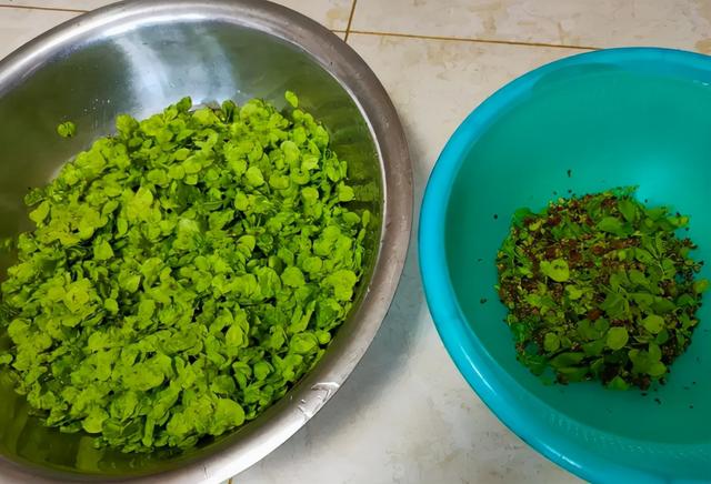 榆钱最常见的一种吃法,就是把它和面粉拌上以后,然后放在锅里直接蒸煮了来吃,味道非常的美味。