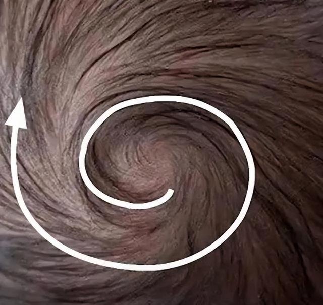 其实,所谓的发旋,并没有那么玄乎。它指的是毛流在头顶形成的一个中心向外,周围头发呈旋涡状的排列。毛干和皮肤呈一定的倾斜度,许多毛发的倾斜方向是一致的,称发流或毛流。