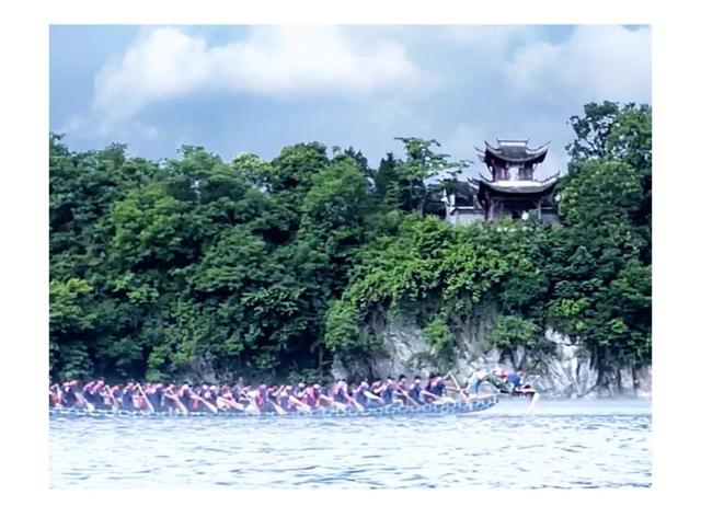 我们在诗意盎然的桃花潭,不仅欣赏如画般的美景,还饱览一场异常激烈的龙舟赛。