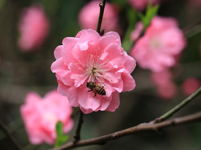 从桃花开始消灭“脸盲症”,是一个好选择。因为桃花不像樱花品种那么复杂,就是单瓣(果桃)与重瓣(观赏桃)两大系列,比较好上手。跟梅花、杏花等相比,桃花的独家特征有四个:第一,花直接贴着枝干开,花梗极短或近无梗。可以记一句好用的口诀——“桃杏梅,贴枝长;樱李梨,花梗长。”